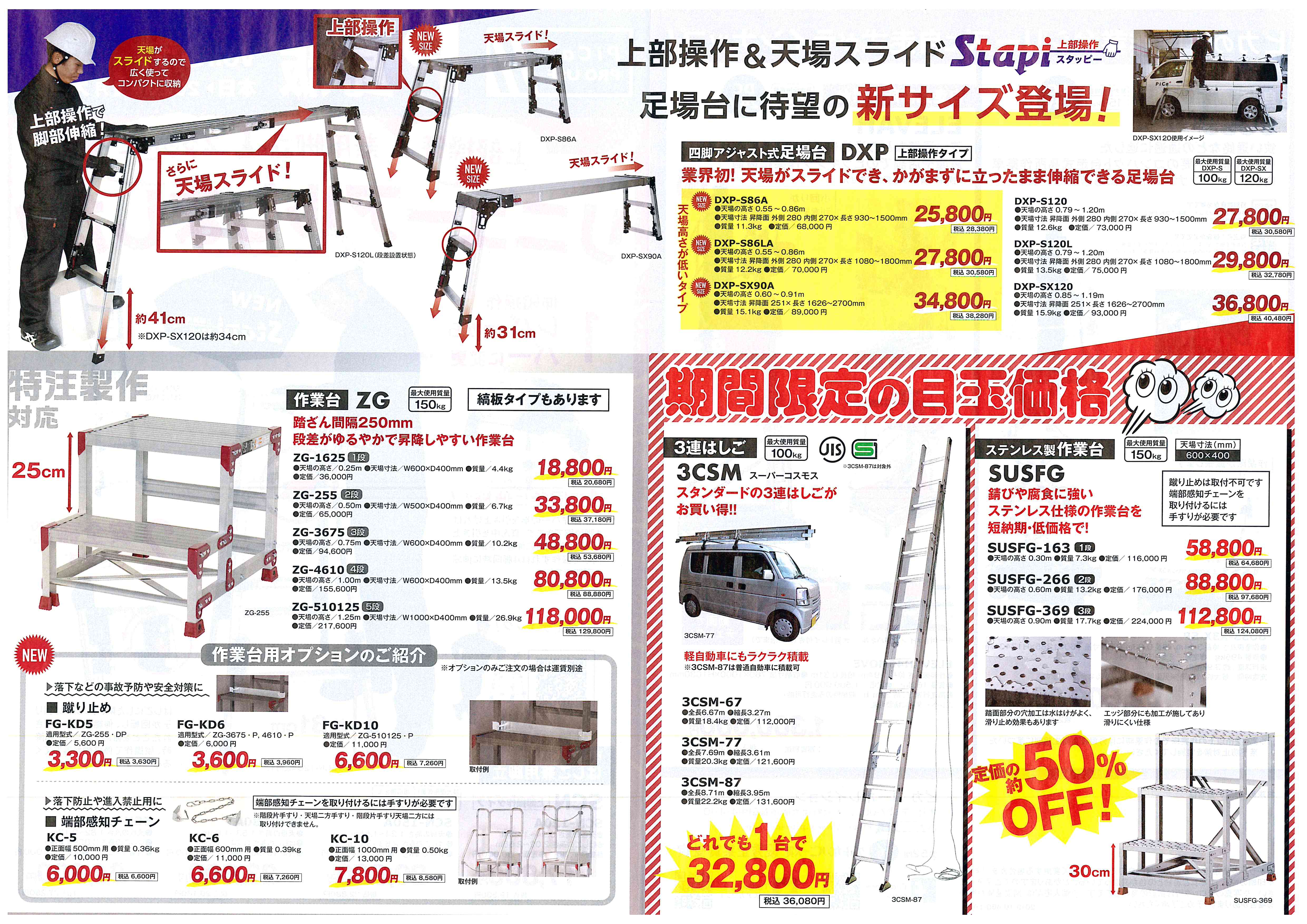 軽自動車のキャリアーにも積める8.7mの3連はしごもラインナップにある3CSMシリーズが超特価です!