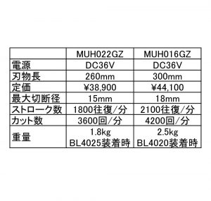 MUH016GZの刃を短くしただけかと思いましたが、よく見たらハンドルもなくなっていて片手で使う前提の機械ですね。