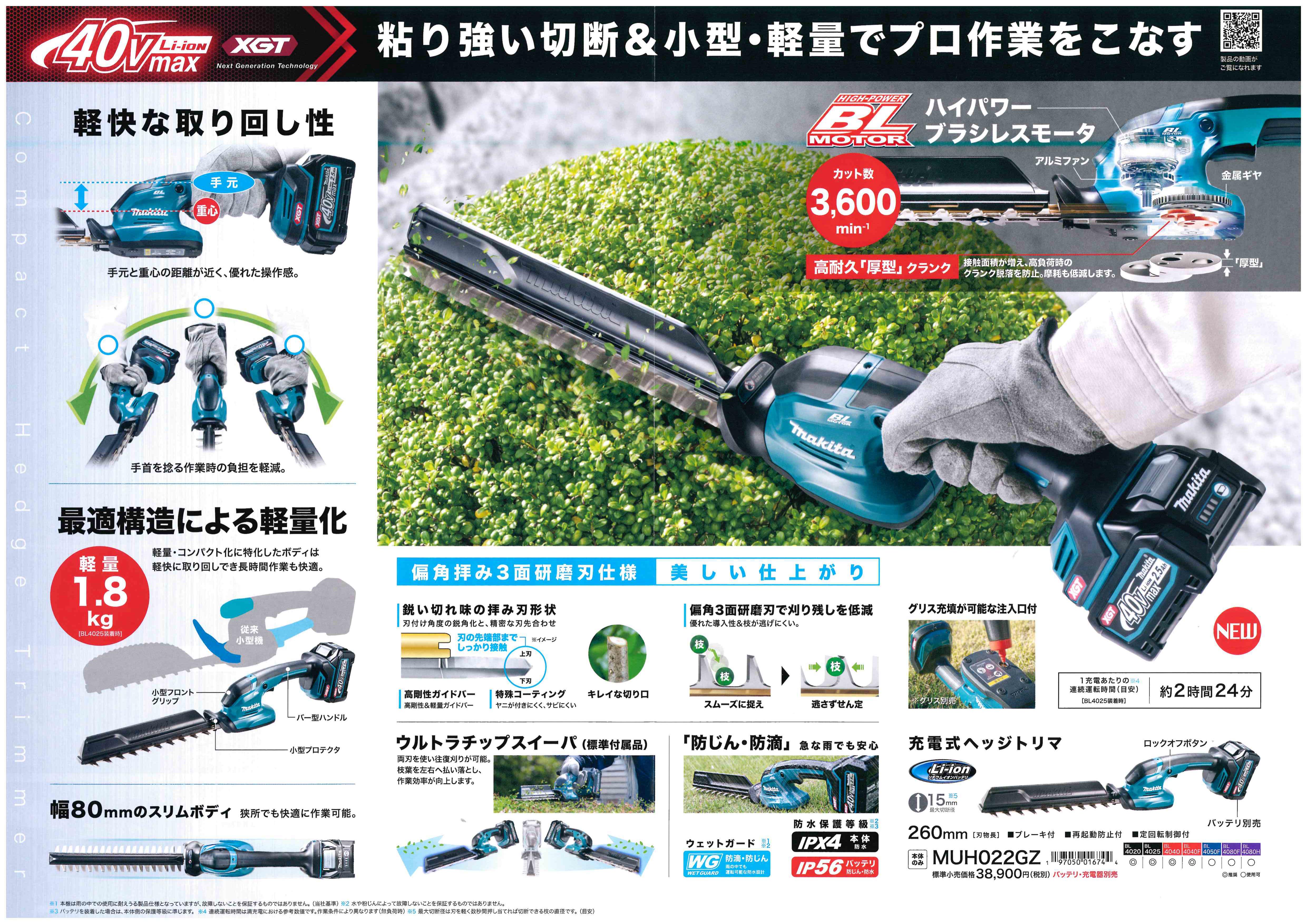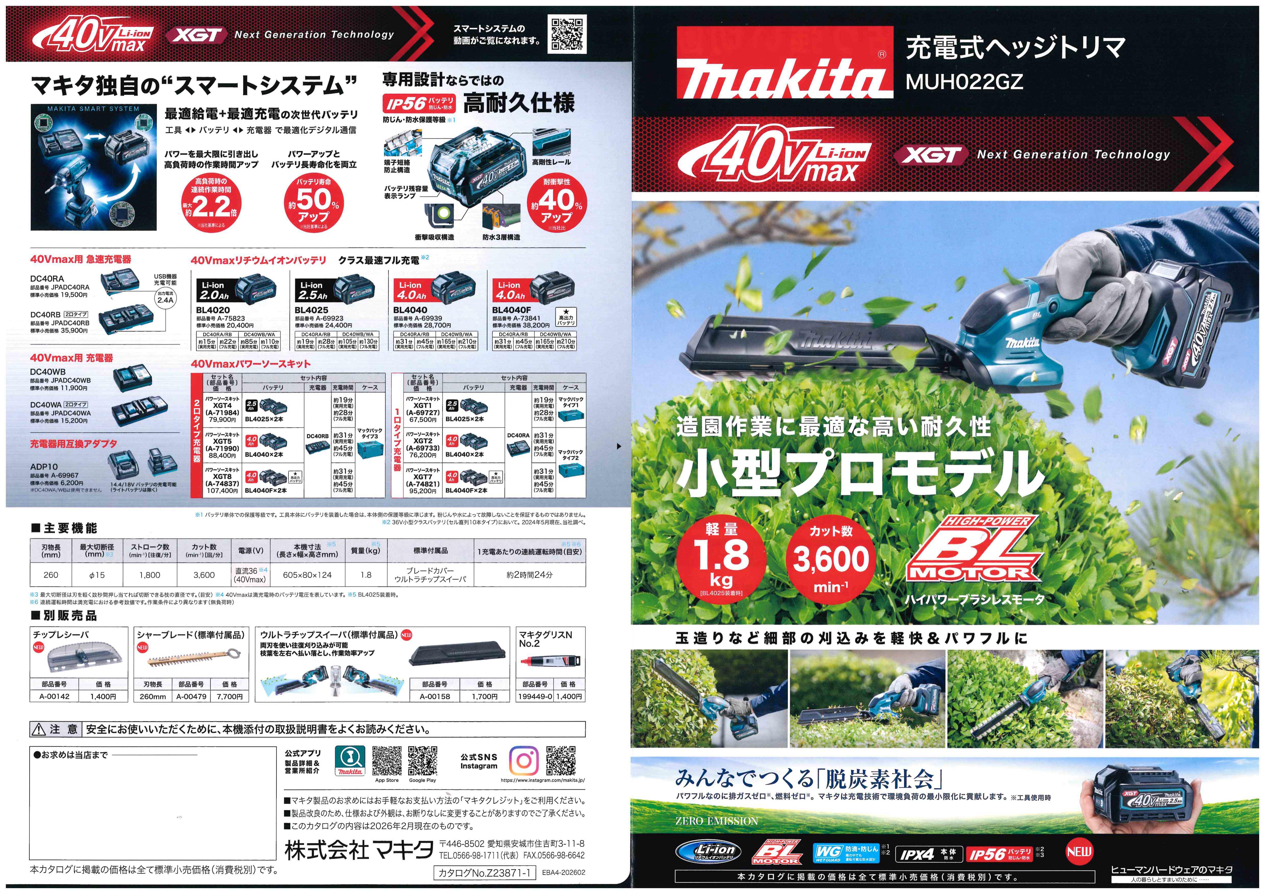 マキタ 40V 260mm充電式ヘッジトリマ MUH022GZ 新発売です!