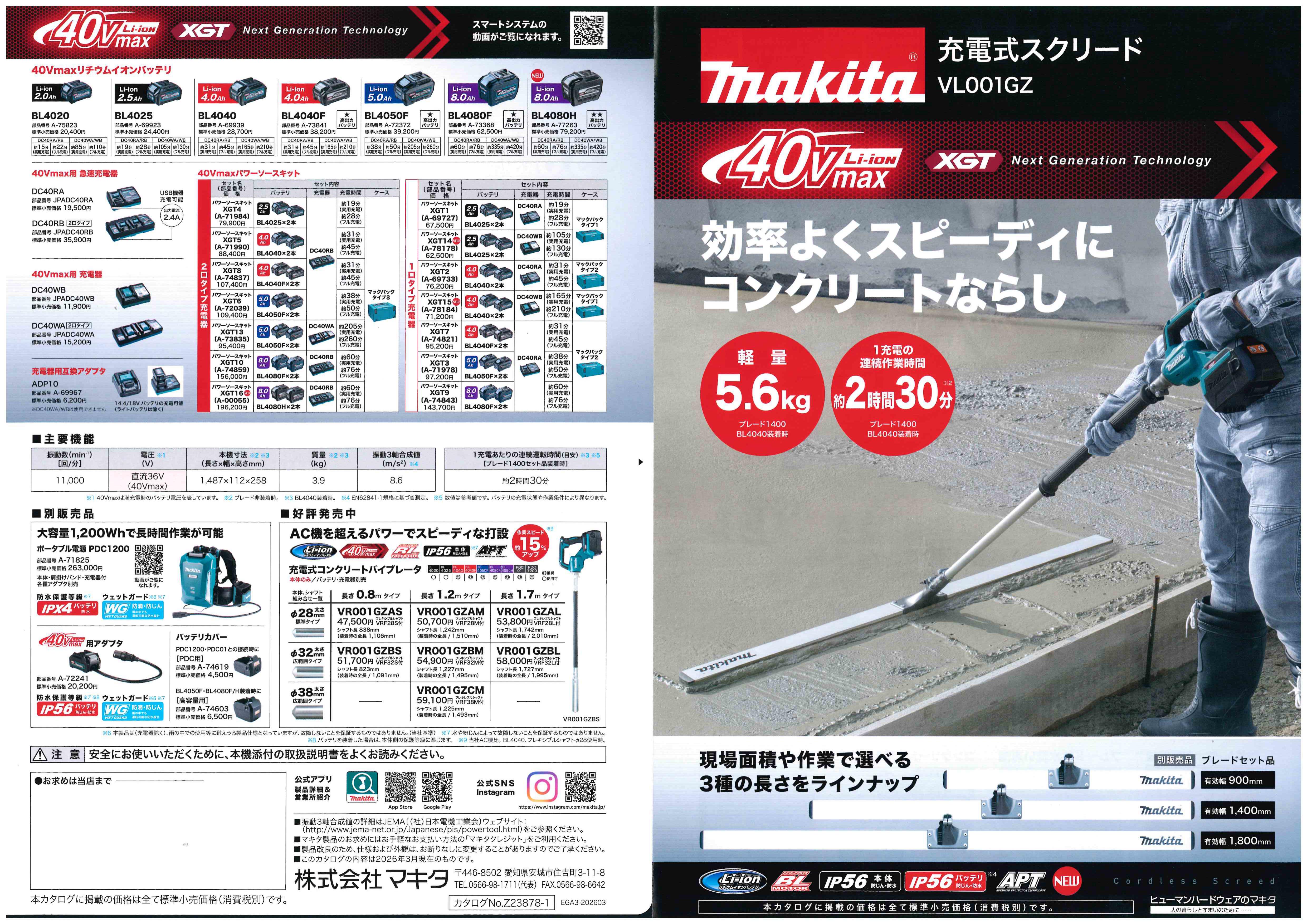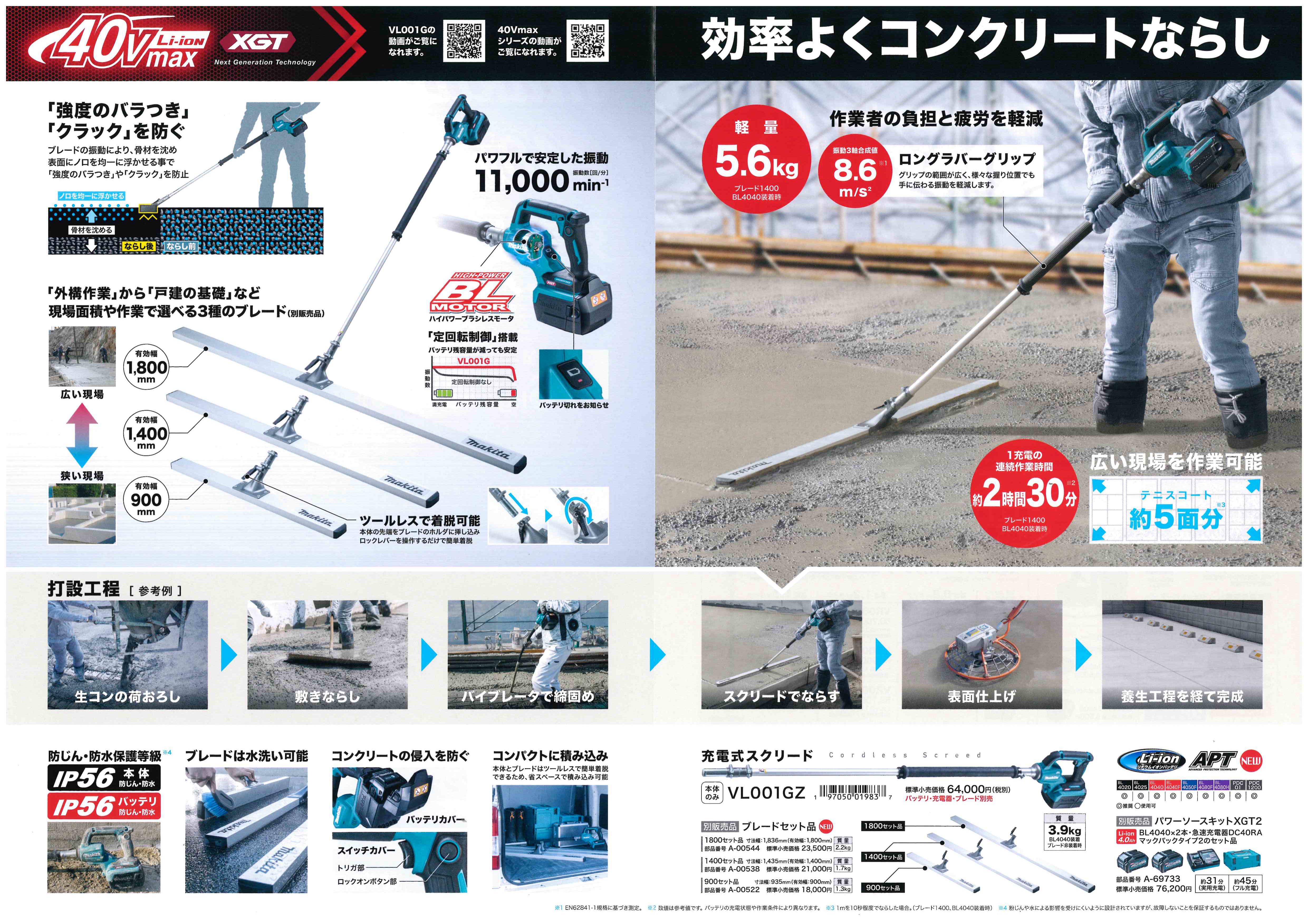 マキタ 40V 充電式スクリード VL001GZ 新発売です!