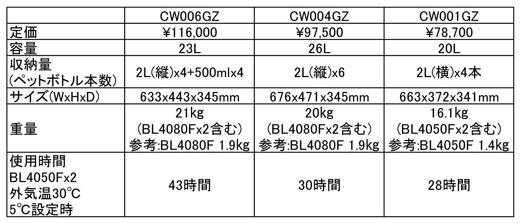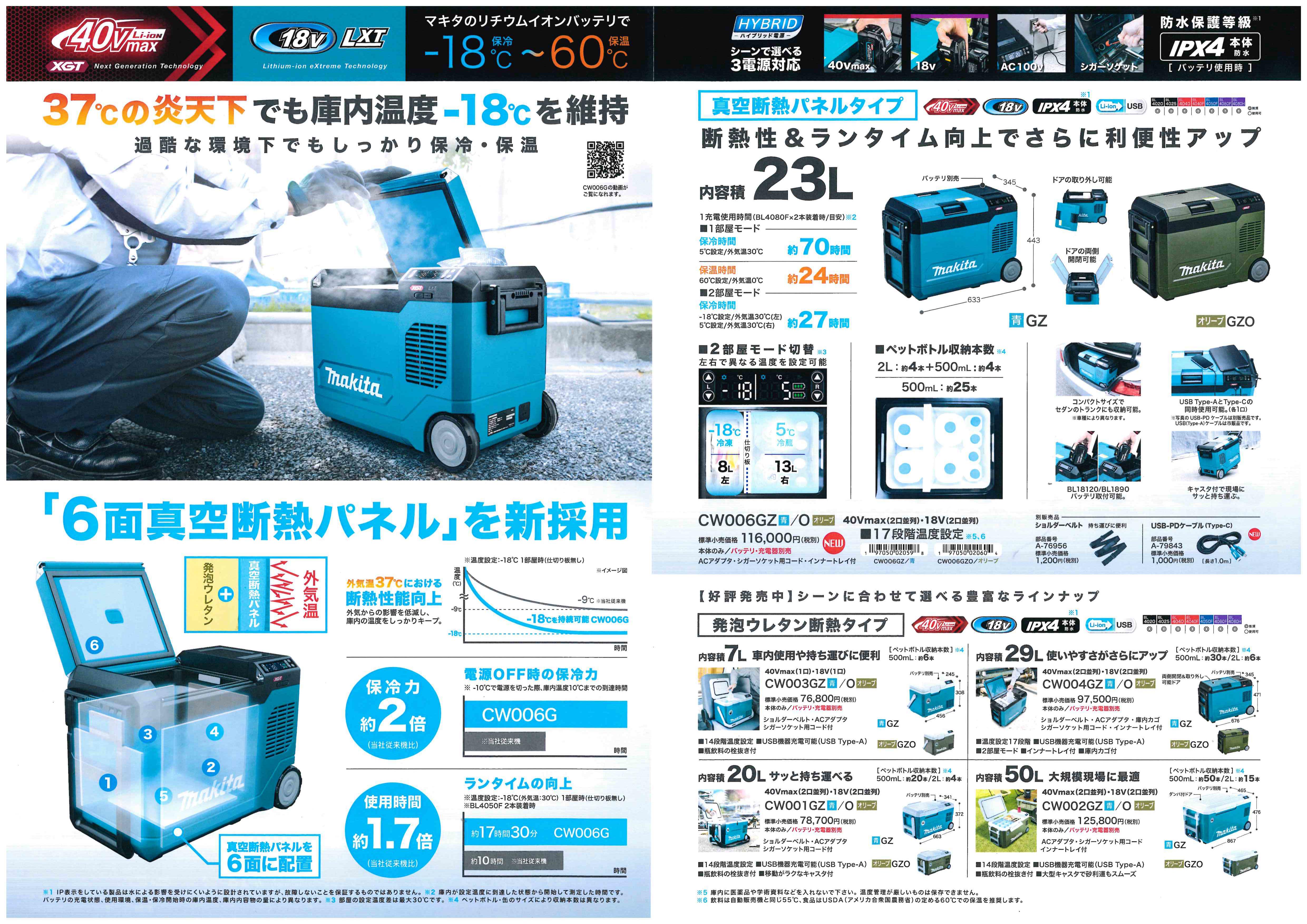 マキタ 40V&18V対応 充電式保冷温庫 CW006GZ 新発売です! 従来機 ...